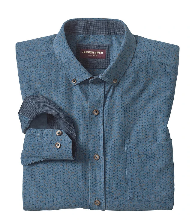 Johnston & Murphy Overdyed Print Corduroy Long Sleeve Woven Shirt