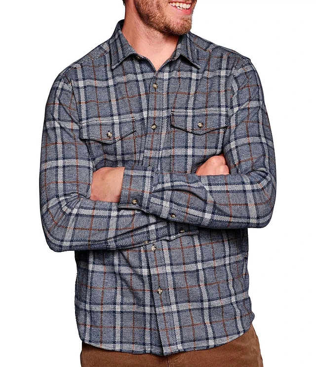 Johnston & Murphy Stretch Brushed Windowpane Long Sleeve Woven Shirt