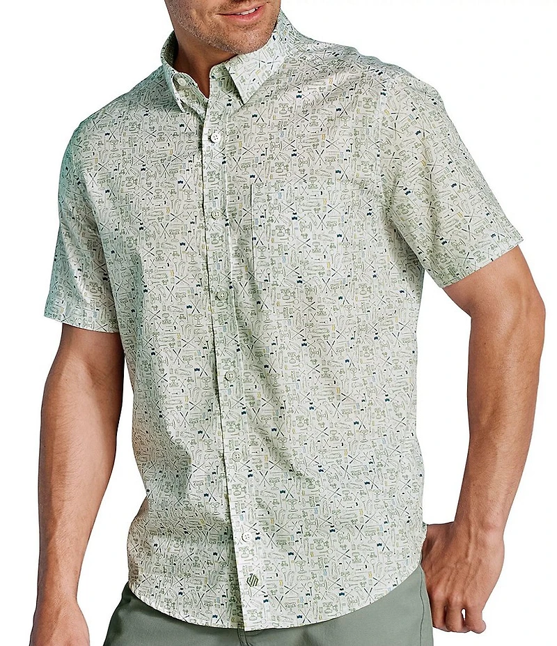 From Johnston & Murphy, this shirt features: Allover tee time print Button-down collar Short sleeves Contrast print inside collar, placket and cuffs Button-front closure Pocket on the left side of chest Softer hand and relaxed drape Cotton/viscose Machine wash/tumble dry Imported.
