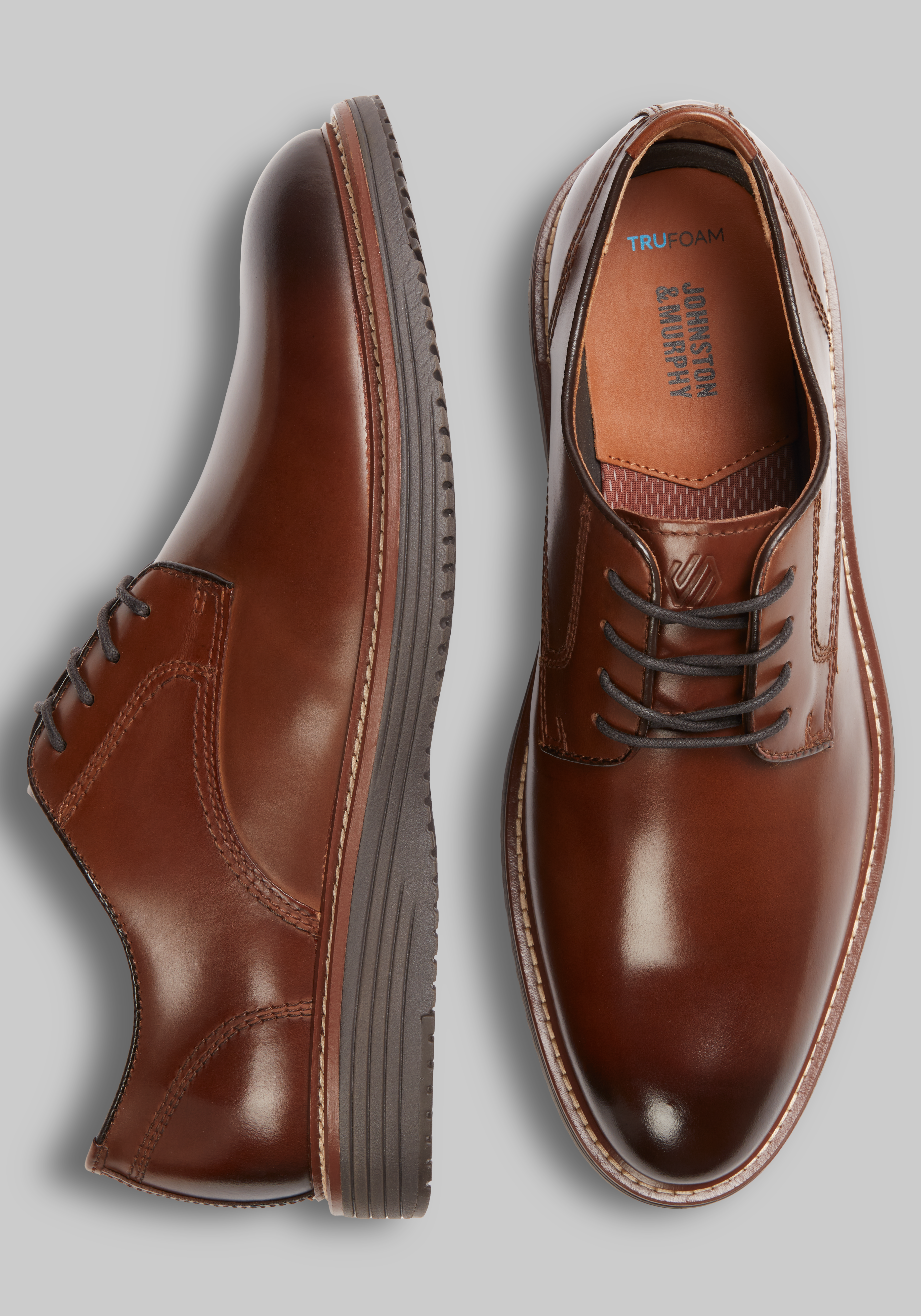 Timeless and versatile, these plain toe Oxfords are a true wardrobe staple. With their clean lines and smooth leather construction, they easily transition from office to evening. A classic lace-up design keeps the look polished, while thoughtful details like cushioned comfort and durable outsoles ensure they're as practical as they are stylish. Whether paired with a suit or dressed down with chinos, they deliver effortless sophistication every step of the way.