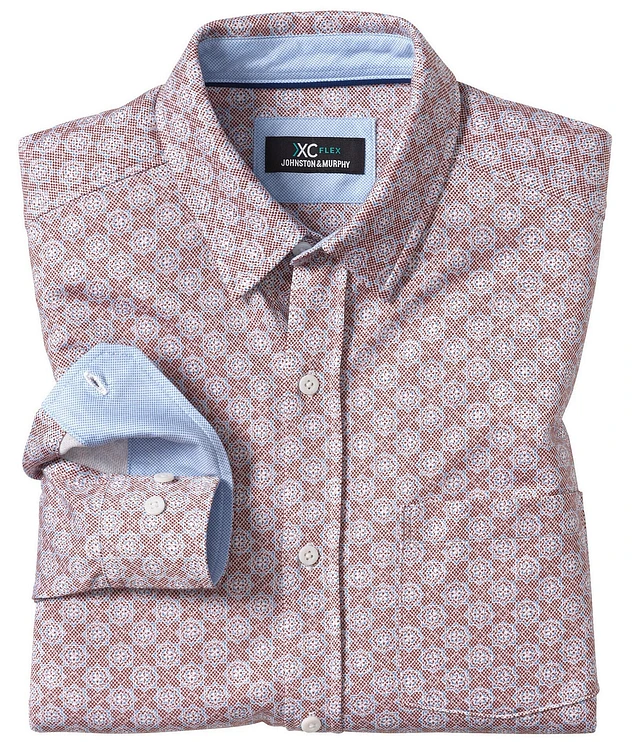 Johnston & Murphy XCFlex Birdseye Tile Print Long-Sleeve Woven Shirt