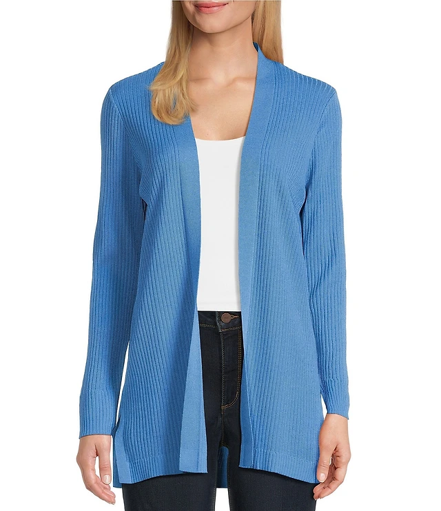 Jones New York Sutton Ribbed Knit Long Sleeve Open Front Cardigan