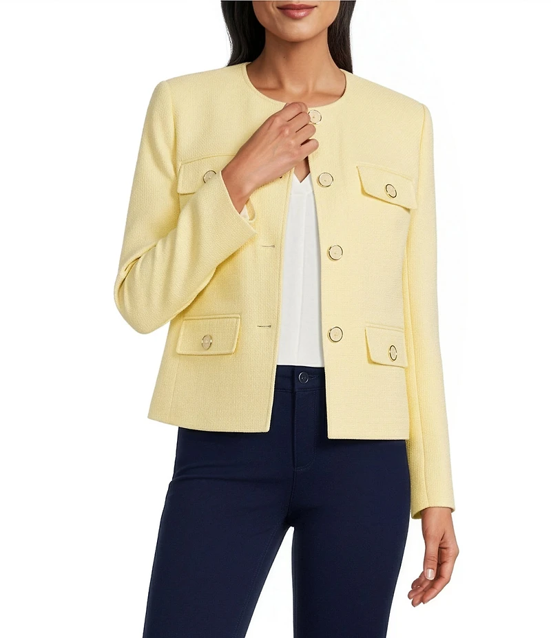 Jones New York Tweed Crew Neck Long Sleeve Button-Front Jacket