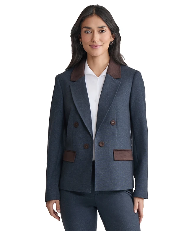 Jones New York Women's Faux Double Breasted Elbow Patch Jacket