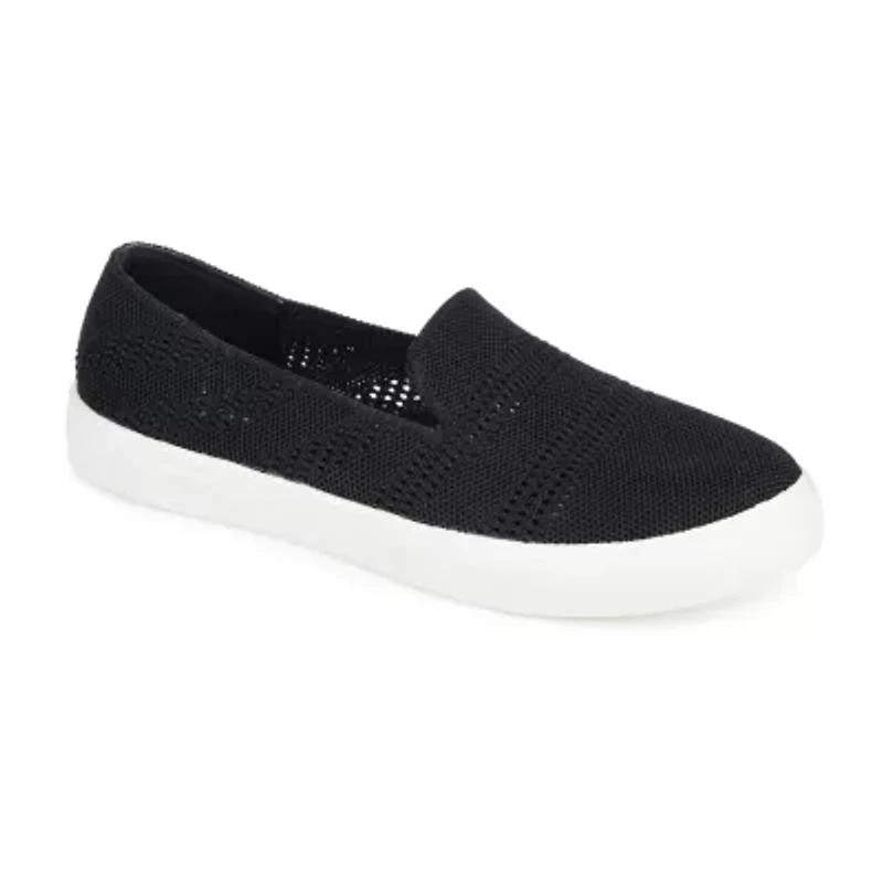 Soft knit uppers refresh this iconic slip-on design by Journee Collection. The Meika is a comfortable and versatile go-to sneaker designed to breathe on warm days. A white rubber sole and a 6 mm True Comfort Foam� footbed complete this style for a cushioned instep.