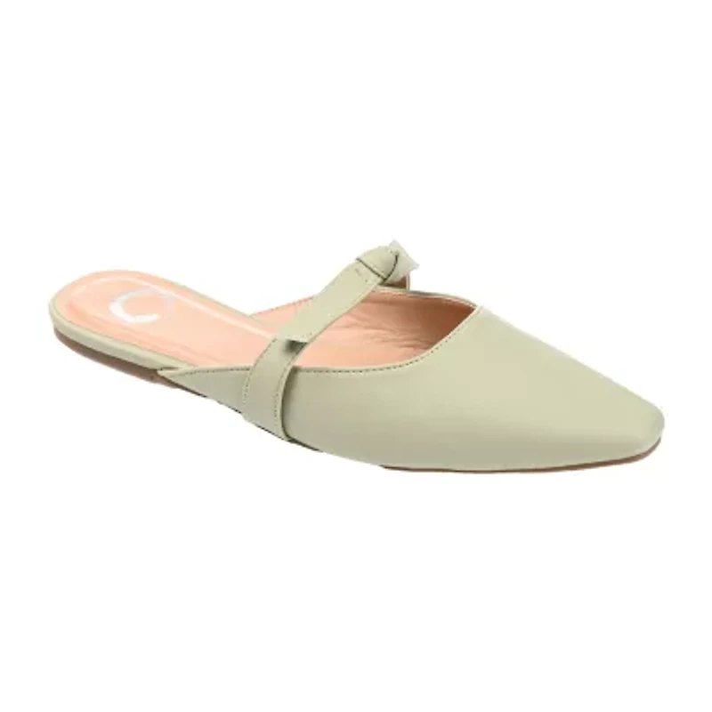 This flat will perfectly pair with your favorite vintage finds, the Missie by Journee Collection. A bow and strap detail complimented by a square-toe adds just the right touch to this vegan leather flat. A slip-on mule silhouette and a comfortable padded insole finish the look.
