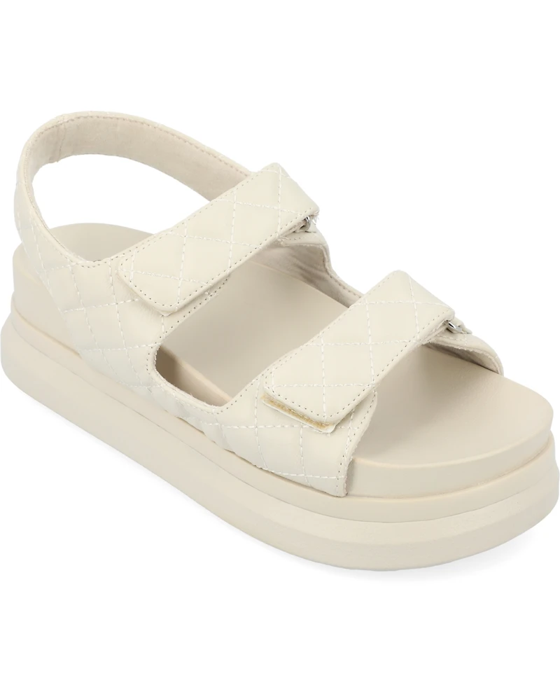 The Debby sandals from Journee Collection will take you anywhere you want to go in style. The luxe faux leather, formed footbed, and lightweight outsole offer the best combination of comfy and cool. The hook and loop entry offers an adjustable fit and a retro look.