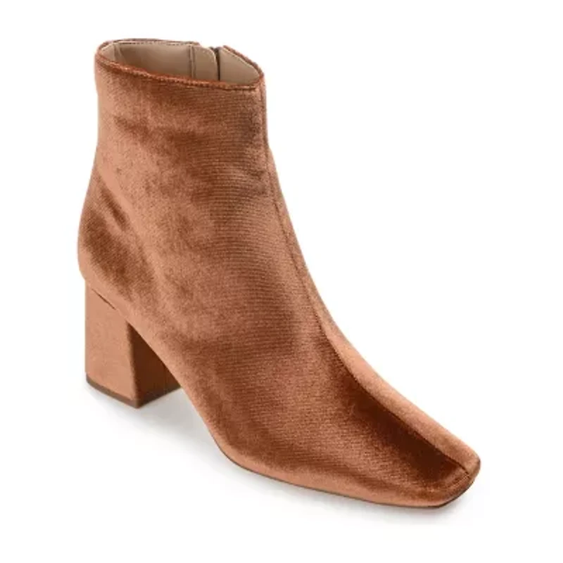 Introducing the Hazara by Journee Collection - a bootie with a bold, mod-inspired 60's flair. Made from soft velvet material in a wide-width design, these booties feature a covered block heel, inside zip entry, square toe, and center seam detail. With a 4 mm tru comfort foam™ insole, the hazara bootie provides all-day comfort without sacrificing style.
