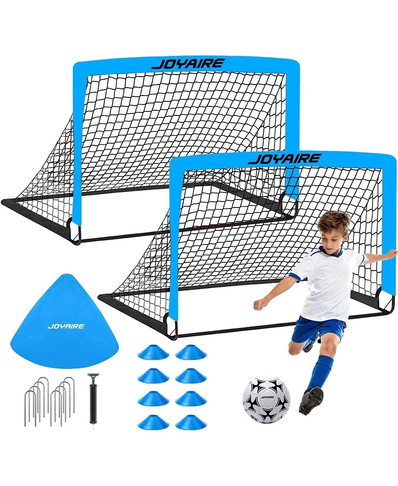 The Joyaire 4x3 ft Soccer Goal Set (2-pack) is the ultimate complete kit designed for years of active fun. Engineered with premium durability features like 450D Oxford cloth, 10mm fiberglass poles, and a reinforced 5-layer net, it withstands intense play. Everything is included for immediate action: 2 goals, a size 4 Tpu soccer ball, pump, 8 cones, U-shaped stakes, and a carry bag. Its unique quick-fold design ensures portability for backyard, park, or beach games. Perfect for ages 3-16, it s more than a toy—it s an invitation to build skills, foster teamwork, and create cherished family memories away from screens.