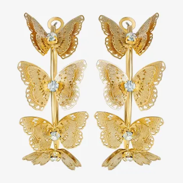 JS Jessica Simpson Gold Tone Womens Glass Butterfly Drop Earrings