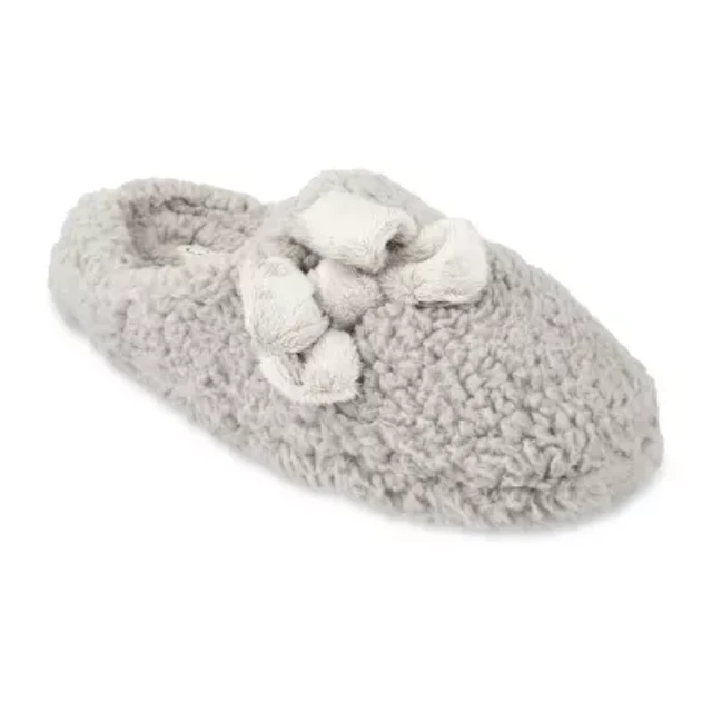 JS Jessica Simpson Embellished Bow Plush Womens Slip-On Slippers
