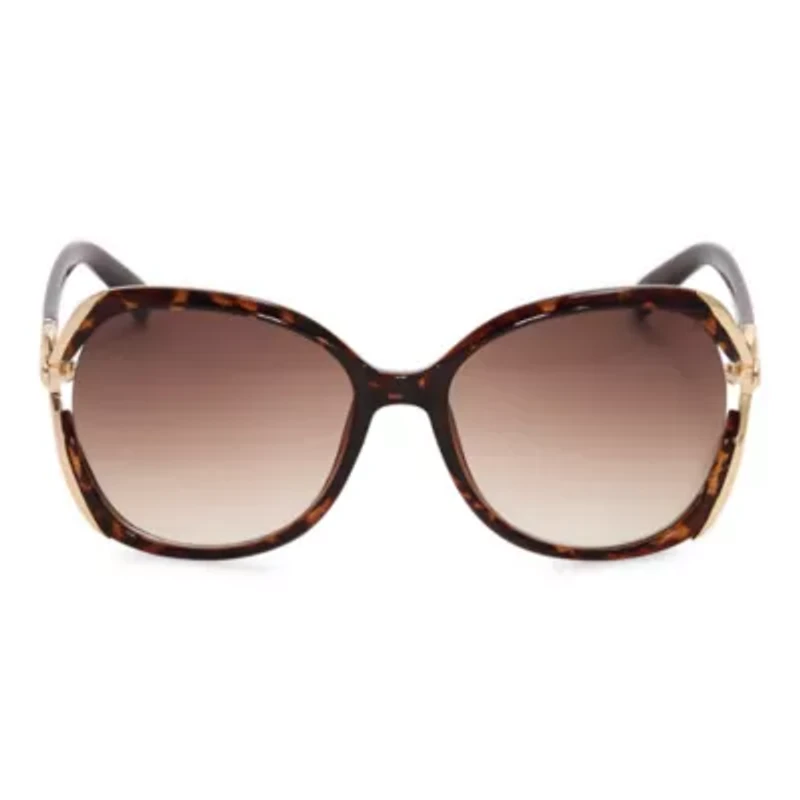 These sophisticated Jessica Simpson sunglasses feature an elegant glam square frame design with softly rounded edges that create a flattering and feminine silhouette. The lightweight frame construction ensures comfortable all-day wear, while the vented detail and gracefully curved metal temples provide both visual interest and a secure, comfortable fit that complements the frame's refined aesthetic. The generous proportions offer excellent coverage and sun protection while maintaining a chic, polished look. These sunglasses offer 100% UV protection to shield your eyes from harmful UVA and UVB rays, making them an essential accessory that combines timeless elegance with practical eye care for the modern, style-conscious woman.
