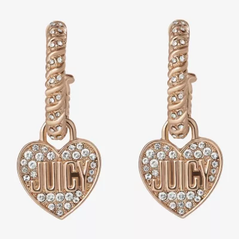 Juicy By Juicy Couture Gold Tone Charm Womens Crystal 38.6mm Heart Hoop Earrings