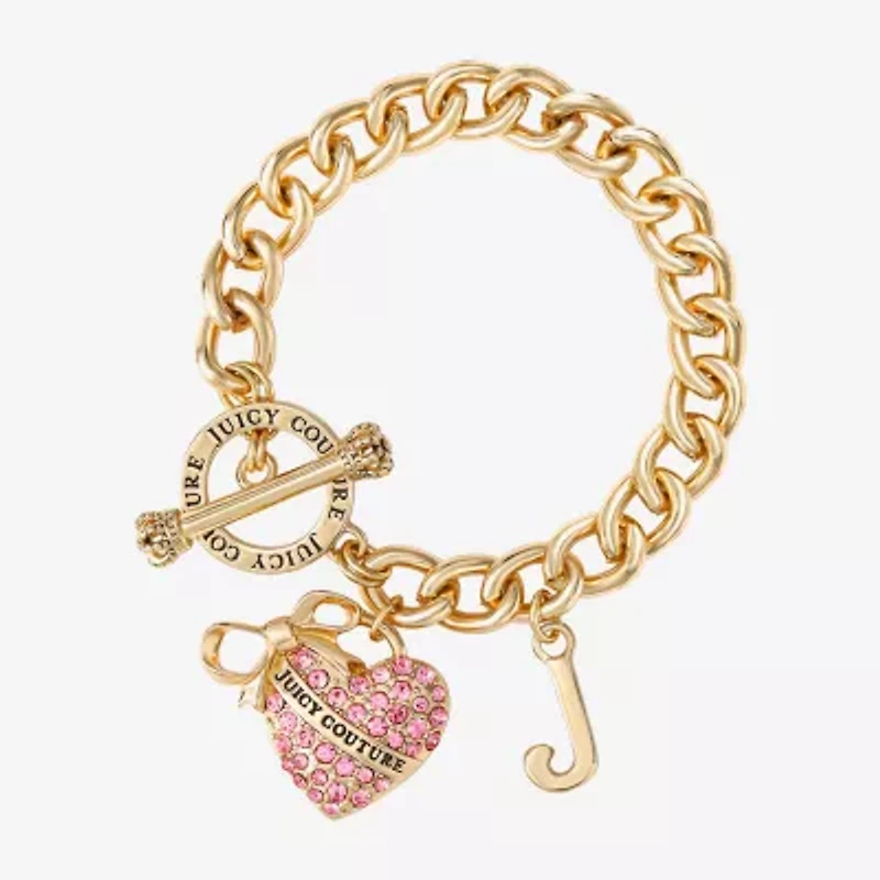 Juicy By Juicy Couture Gold Tone Toggle Womens Pink Crystal Bow Heart Charm Bracelet