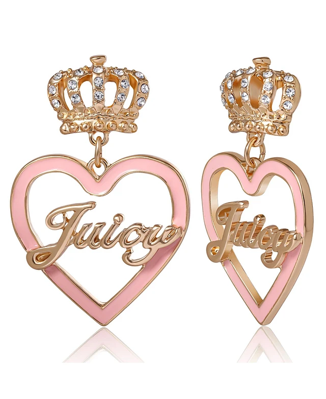 Juicy Couture Gold-Tone Crown & Pink Heart Drop Earrings