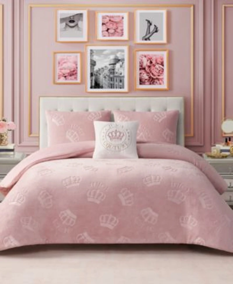 Make a bold style statement with this Juicy Couture Embossed Plush Crown Comforter Set, crafted for ultimate comfort and undeniable glamour. The included decorative pillow adds a polished designer touch, completing the look with effortless sophistication. Perfect for the fashion-obsessed, this set turns your sleep space into a glamorous retreat.