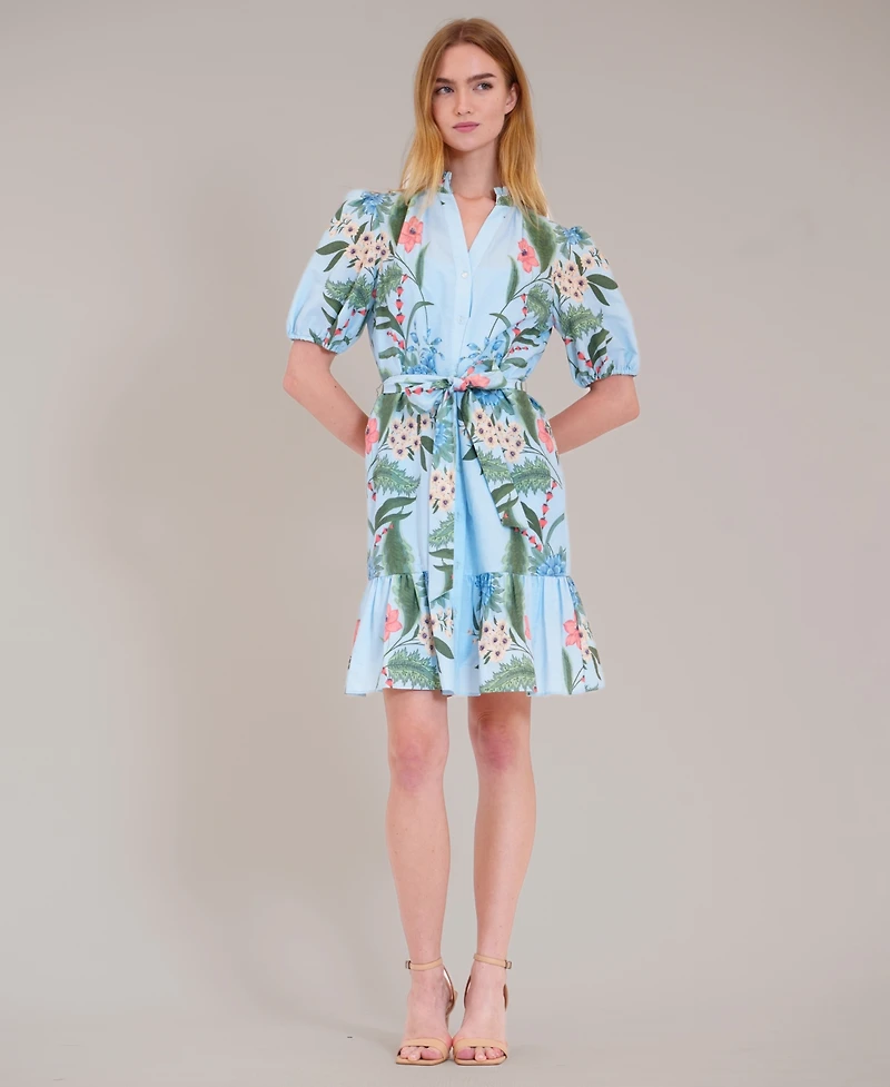 Step into romantic charm with julia jordan mini dress styled with playful puff sleeves and a flattering V-neckline. A button-front closure defines the knee-length silhouette.