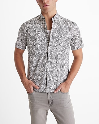 Jungle Print Cotton Stretch Short Sleeve Shirt