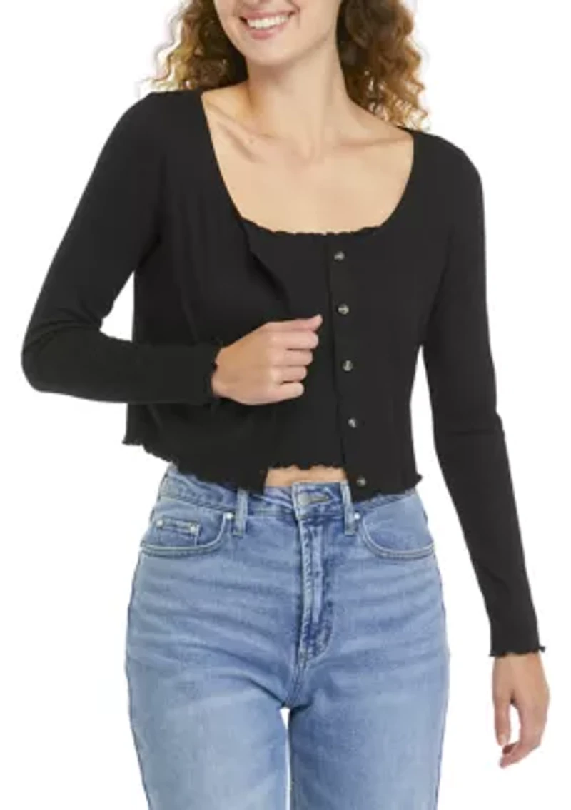 This chic tank set from Fire comes with a long-sleeved cardigan for pulled-together allure. 2-piece set Tank: pullover, round neck, sleeveless Cardigan: button closure, long sleeves Unlined Imported Product Specifications 18.5" L Material & Care Polyester, rayon, spandex Machine washable