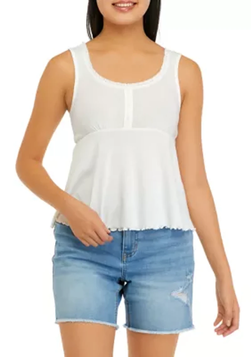 Juniors' Sleeveless Henley Babydoll Tank Top