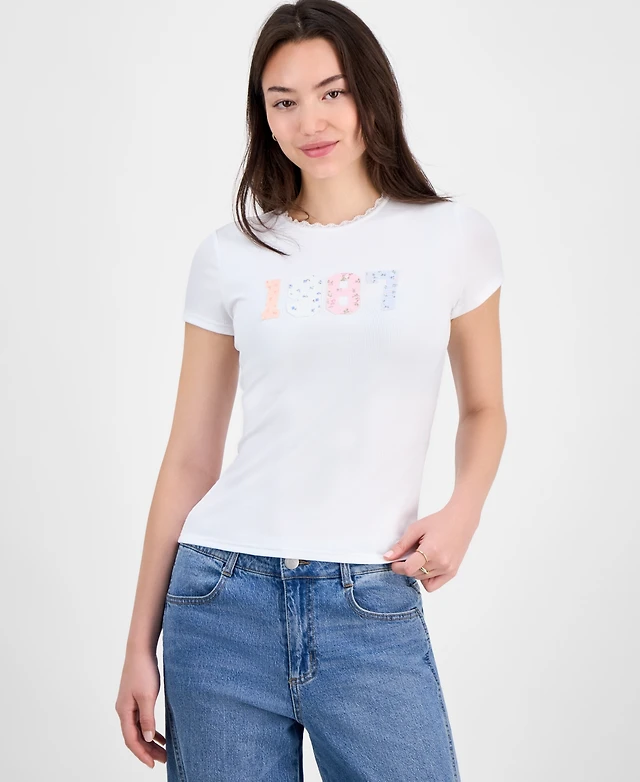 Just Polly Juniors' Applique Picot-Trim T-Shirt