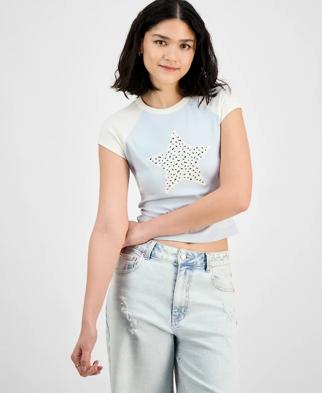 Just Polly Juniors' Beachy Beaded Short-Sleeve T-Shirt