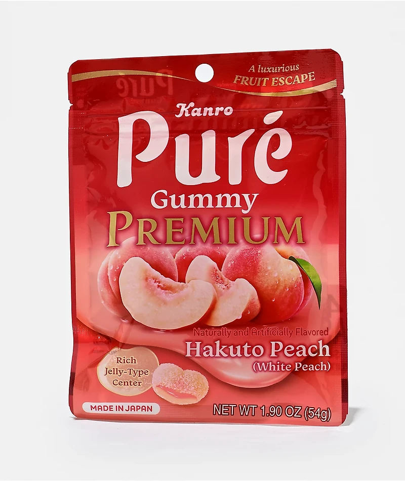 Often regarded as the "Queen of Peaches", Kanro Puré delivers the Hakuto Peach flavored gummy candy in a resealable pouch for convenient storage until your sweet tooth needs attention again. Filled with a rich jelly-type center for a mix of textures,