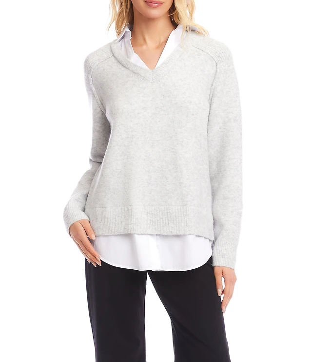 Karen Kane Layered V-Neck Long Sleeve Knit Underlayer Combo Top