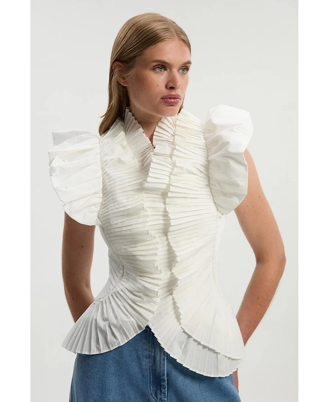 Karen Millen Women's Pleated Ruffle Sleeve Woven Top