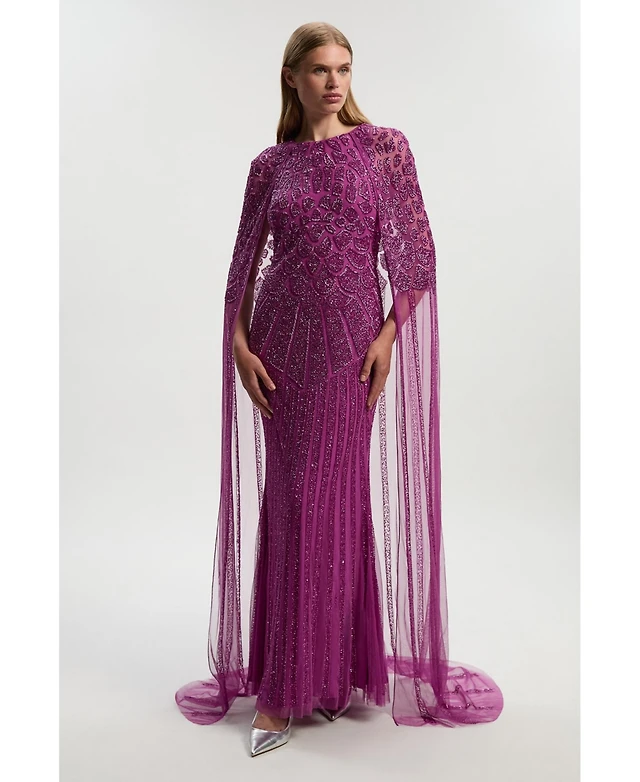 Karen Millen Women's Premium Embellished Caped Maxi Dress