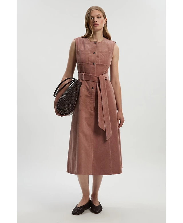 Karen Millen Women's Stretch Cord Belted Midi Dress