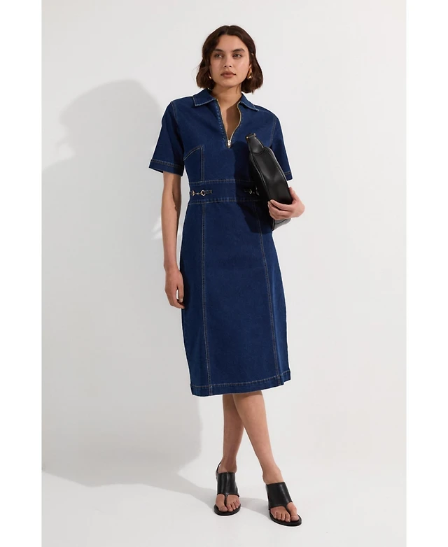 Karen Millen Women's Trim Collared Denim Midi Dress