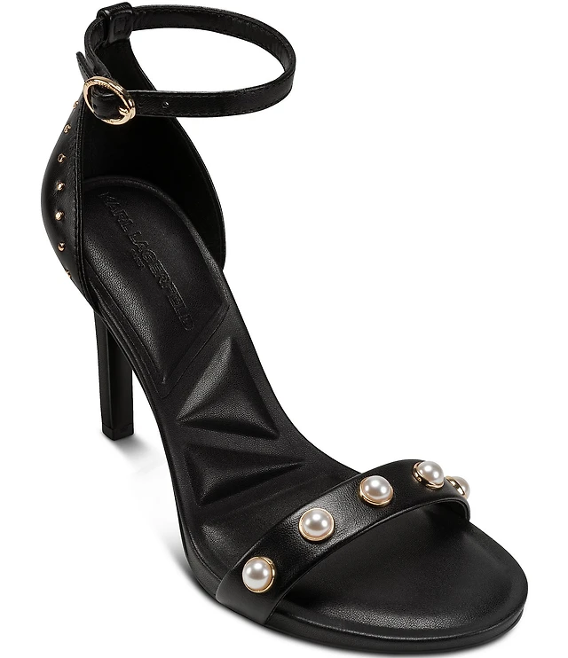 KARL LAGERFELD PARIS Kenz Pearl Studded Leather Ankle Strap Dress Sandals