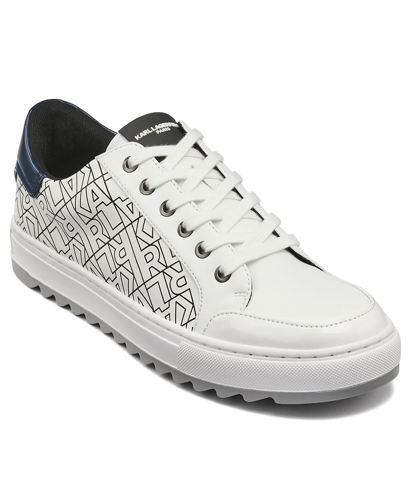 Showcasing patent detailing and side logo print, these sneakers by Karl Lagerfeld Paris present a sleek and glossy appearance. The construction offers a polished and modern look.