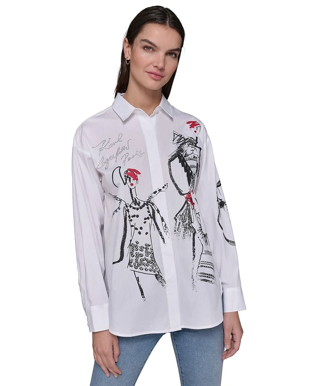 Karl Lagerfeld Paris Petite Cotton Sketch Girl Shirt