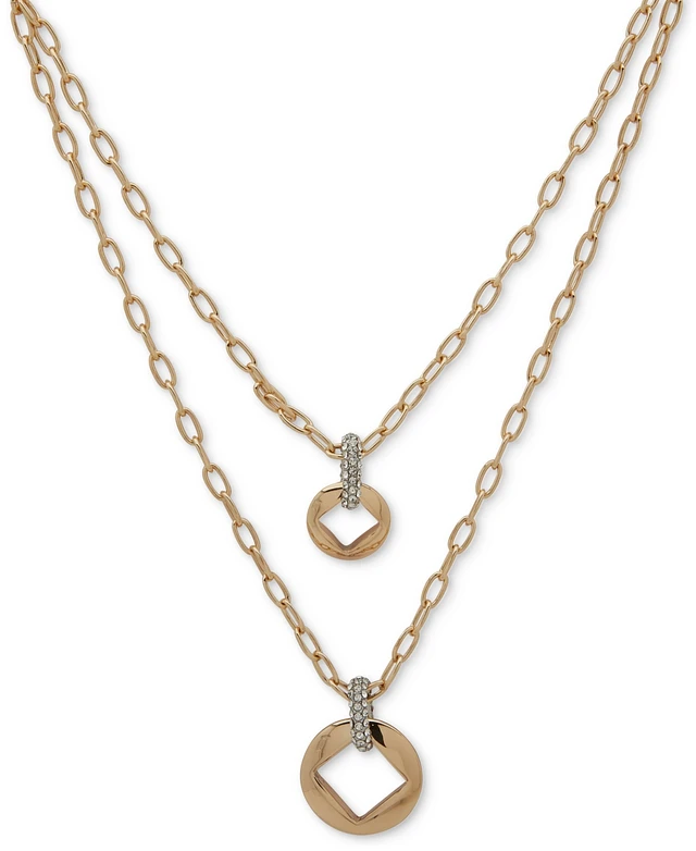 Dkny Gold-Tone Pave Disc Layered Pendant Necklace, 16" + 3" extender