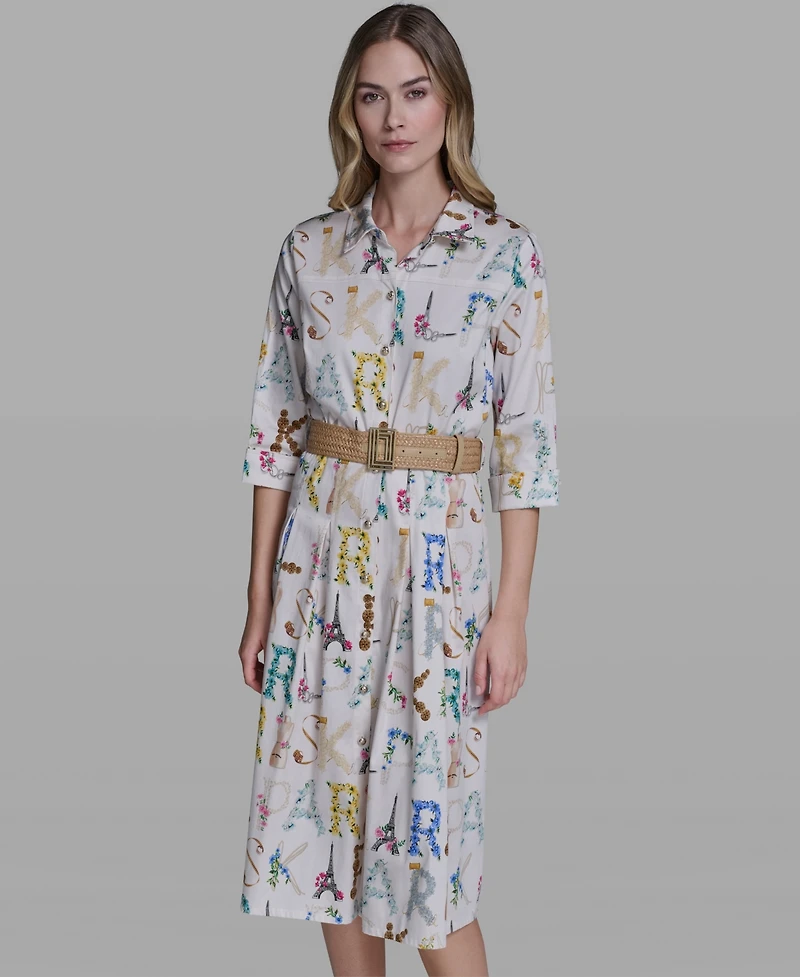 Karl Lagerfeld Paris Women's Allover Print Belted Collared Shirt Dress