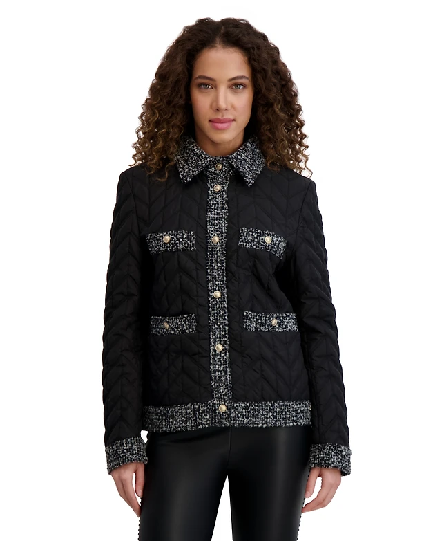 Karl Lagerfeld Paris Women's Quilted Tweed-Trim Coat