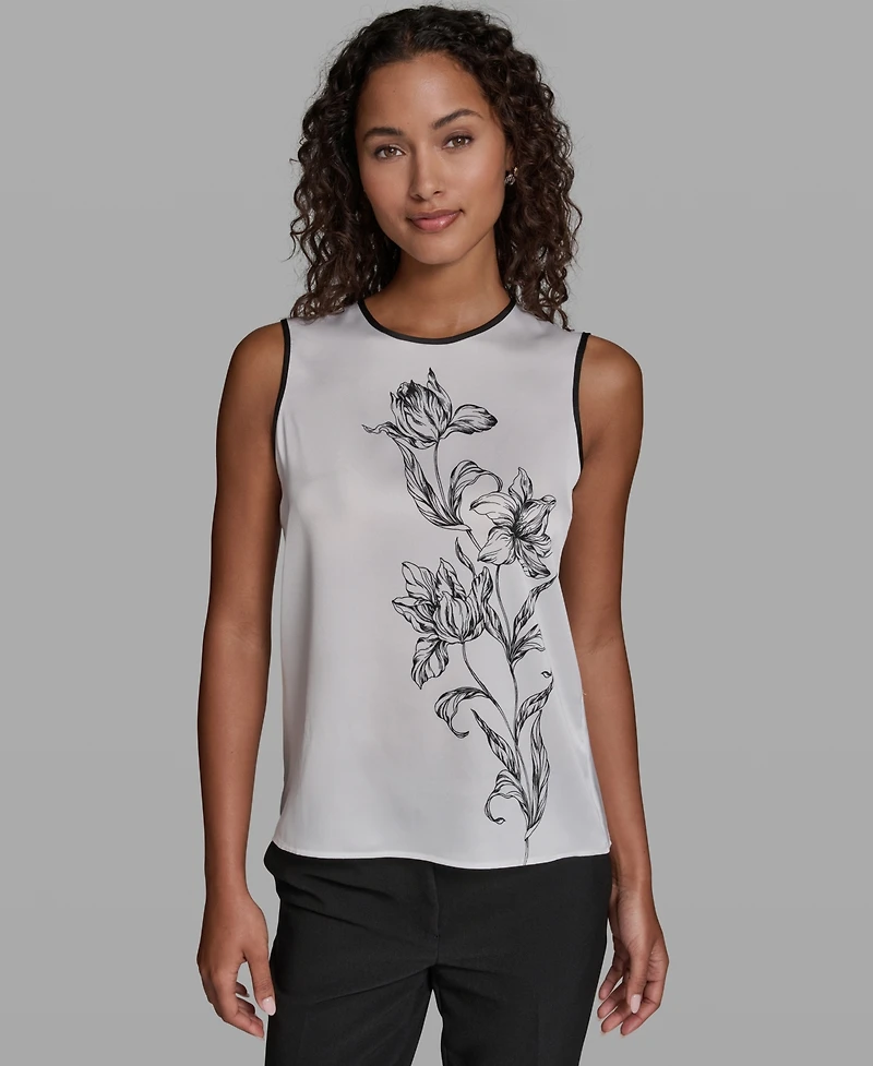 Refine your wardrobe with this Karl Lagerfeld Paris woven blouse, highlighting a crewneck that sharpens a modern profile. Sleeveless construction keeps the feel light, while a center-back keyhole closure introduces subtle detail for a refined finish.