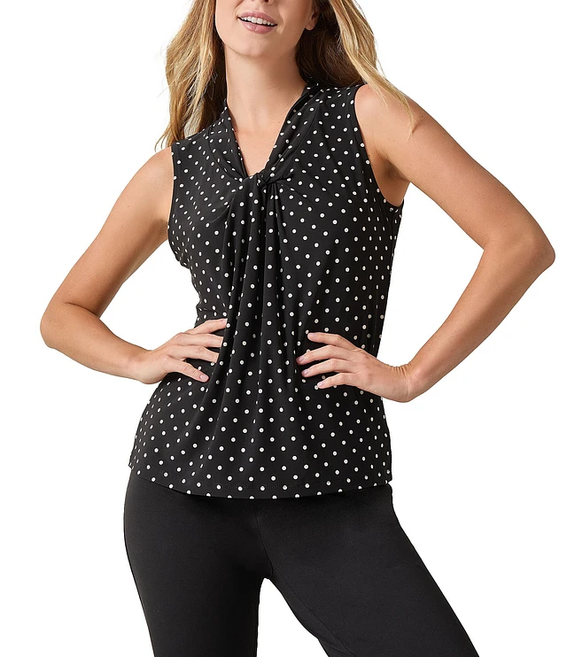 Kasper Polka Dot Printed Knot-Front V-Neck Sleeveless Blouse