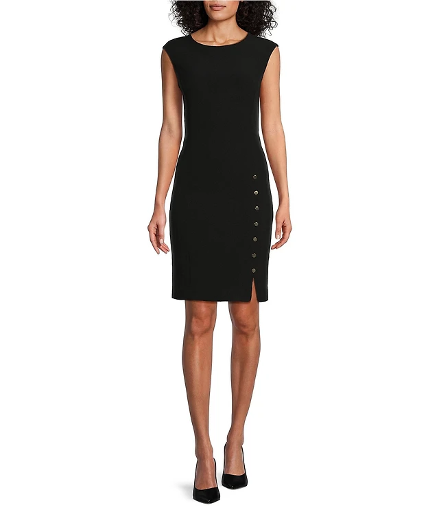 Kasper Stretch Crepe Crew Neckline Cap Sleeve Studded Sheath Dress