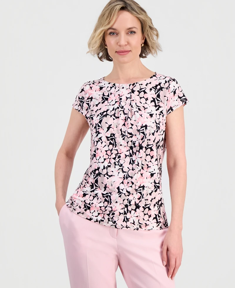 Kasper Women's Floral Pleat-Front Cap-Sleeve Top in Franklin, TN