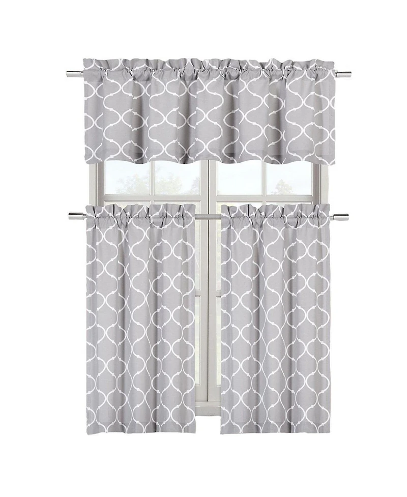 Upgrade your kitchen window treatments with Kate Auroras Quatrefoil Trellis design kitchen curtain set