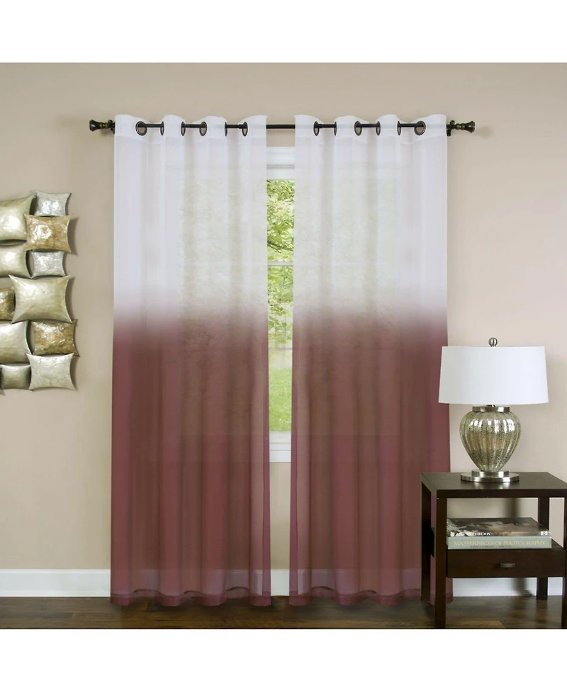 Kate Aurora Tropical Living Semi Matte Sheer Ombre Chic Grommet Top Window Curtains - 52 in. W x 84 L