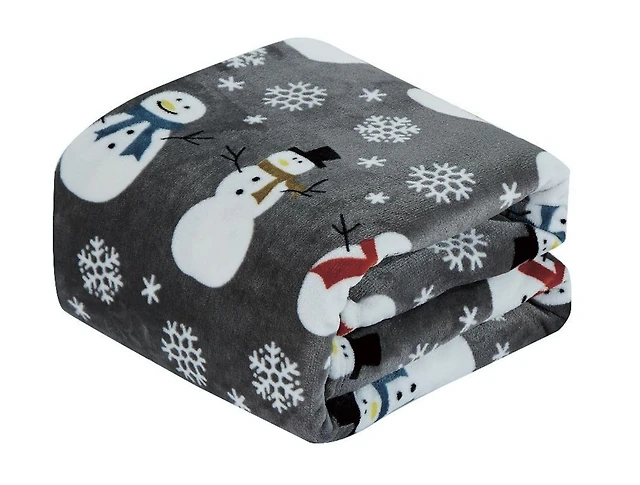 Kate Aurora Ultra Soft & Cozy Christmas Gray Snowman Plush Accent Throw Blanket Cover - 50 in. W x 60 in. L