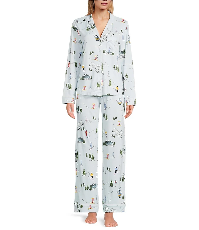 kate spade new york Cozy Jersey Knit Winter Village Print Long Sleeve Notch Collar Holiday Pajama Set