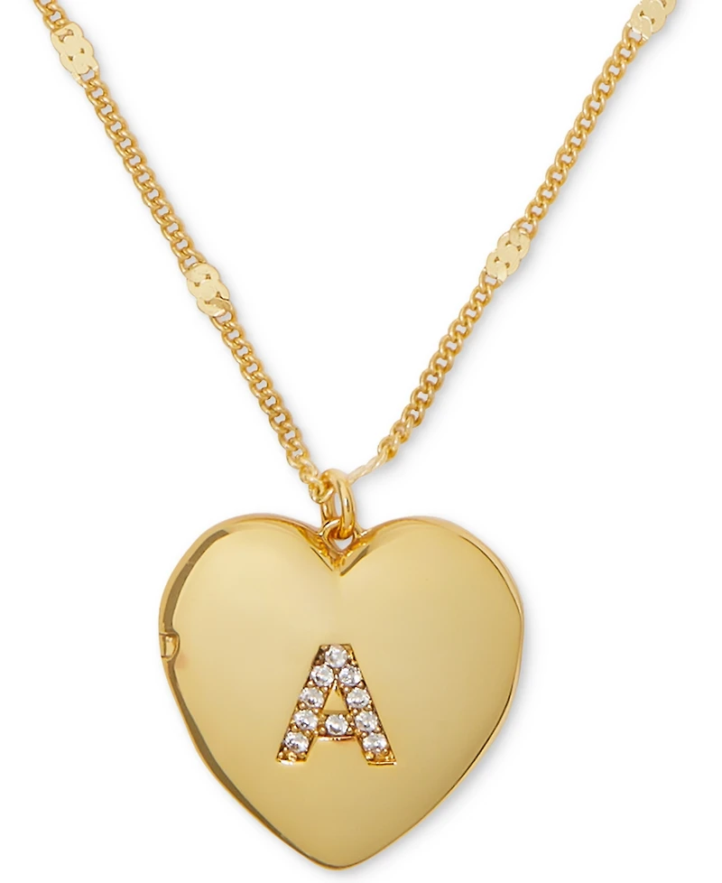 Kate Spade New York Gold-Tone Crystal A Locket Pendant Necklace, 16" + 3" extender