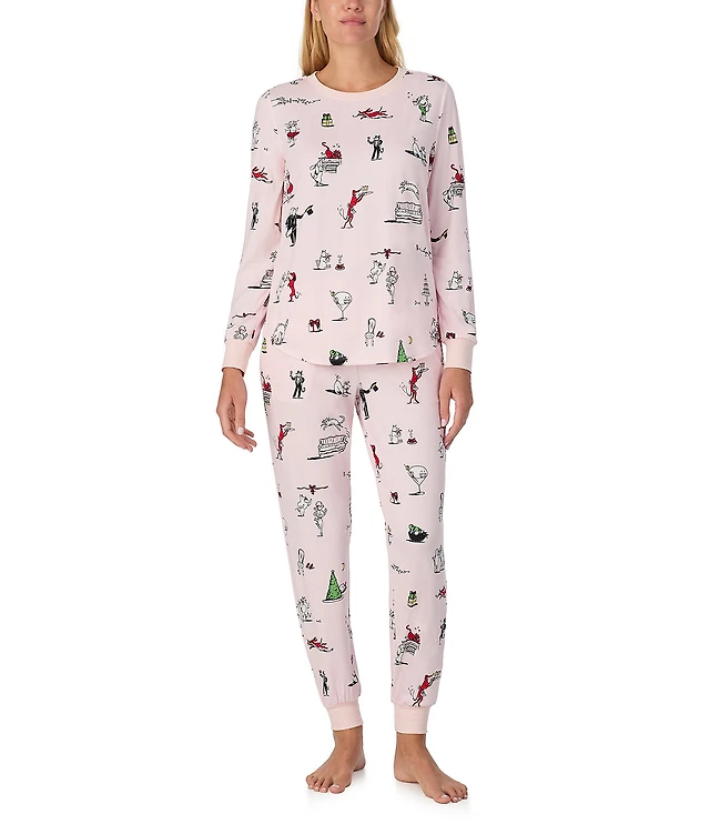 kate spade new york Holiday Party Print Long Sleeve Crew Neck Top & Jogger Long Knit Holiday Pajama Set
