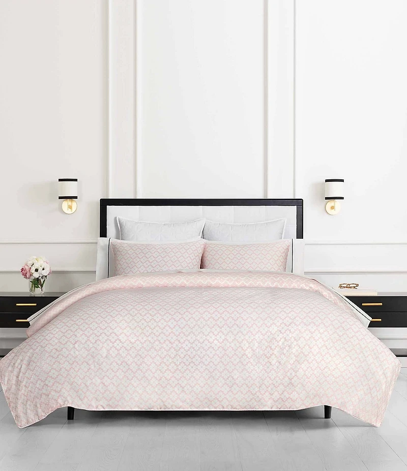 From kate spade new york, this comforter mini set features: Made from 300-thread-count Reversible comforter set with spade flower print on one side and subtle reversed print on the other Adds a playful yet subtle accent to any bedroom décor All-season bedding design offers breathable warmth for year-round comfort Made with a 100% cotton cover for a soft, smooth feel Set includes: one comforter and two coordinating  pillow shams Machine wash cold, gentle cycle; tumble dry low; do not iron Full/Queen comforter mini set includes: Comforter approx. 92" x 96" Two standard shams each approx. 20" x 26" King comforter mini set includes: Comforter approx. 110" x 96" Two king shams each approx. 20" x 36" Imported. Since its launch in 1993 with six essential handbags, kate spade new york has always stood for optimistic femininity. Today, it’s a global life and style brand. Of course, there are plenty of handbags. But there are also clothes, shoes, and lots of home decor — all things you want and use daily. With thoughtful details and polished, chic looks, kate spade new york home categories have extended to bedding, including bed pillows, sheets and comforters. The styles are synonymous with joy — and we like that.