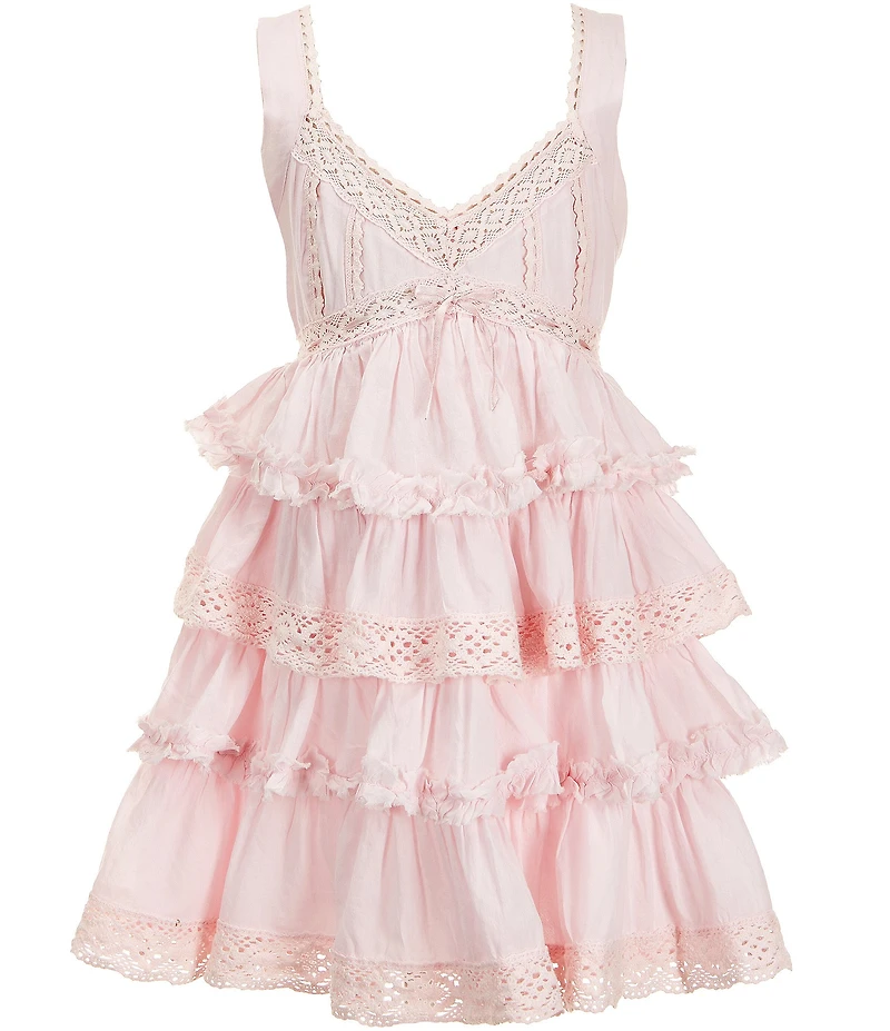 From KatieJNYC, this dress features: V-neckline Shoulder straps Empire waist Lace trim Full, pleated ruffle-tier skirt Zippered side Cotton Hand wash/line dry Imported.